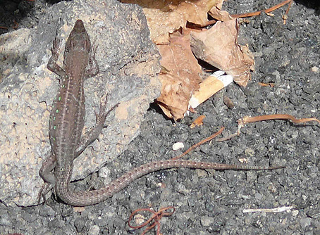 Peters, W.C.H. & Doria, G. (1882) - Note erpetologiche e descrizione di una nuova specie di Lacerta delle Isole Canarie. - Annali del Museo Civico de Storia Naturale di Genova, (1) 18: 431-434.  Bischoff, W. (1985) - Die Herpetofauna der Kanarischen Inseln. IV. Die Atlantische Eidechse, Gallotia atlantica (PETERS & DORIA, 1882). - herpetofauna, 7 (37): 15-24.  ×Die Beziehungen der kanarischen Eidechsen der Gattung Gallotia zu den anderen Lacertiden werden diskutiert. Die äußerlich klar zu erkennende Gallotia atlantica gliedert sich in 2 Unterarten G. a. atlantica und G. atlantica mahoratae. Der Lebensraum und die derzeit bekannten Daten über die Lebensweise werden beschrieben. Hinweise zur Haltung dieser Art im terrarium schließen den Beitrag ab. Gonzáles, P. & Pinto, F. & Nogales, M. & Jiménez-Asensio, J. & Hernández, M. & Cabrera, V.M. (1996) - Phylogenetic relationships of the Canary islands endemic lizard genus Gallotia (Sauria: Lacertidae), inferred from mitochondrial DNA sequences. - Molecular Phylogenetics and Evolution, 6 (1): 63-71.  ×Phylogenetic relationships among species and subspecies of the Canary Island endemic lizard genus Gallotia are inferred base on nucleotide sequence of fragments of 12S ribosomal RNA and cytochrome b mitochondrial genes. The four morphologically established species have also been recognized at the molecular level. Relative affinities among species follow an eatsern-western geographic transect. The nearly extinct species Galloti simonyi from the most western island of El Hierro is closely related to the common western species Gallotia galloti. The nearest branch to this pair is Gallotia stehlini from the central island of Gran Canaria, and finally, Gallotia atlantica from the two eastern and geologically oldest islands appears as the most distantly related species of the group. At the statistical level, four subspecies can be recognized in G. galloti, but only two in G. atlantica. Bischoff, W. (1998) - Gallotia atlantica (Peters & Doria, 1882) - Atlantische Eidechse, Purpurarien-Eidechse. - In: Bischoff, W. (Hrsg.): Handbuch der Reptilien und Amphibien Europas. Die Reptilien der Kanarischen Inseln, der Selvagens-Inseln und des Madeira Archipels. Wiesbaden (Aula). 236-264.  Molina Borja, M. & Rodriguez-Dominguez, M.A. (2004) - Evolution of biometric and life history traits in lizards (Gallotia) from the Canary islands. - Journal of Zoological Systematics and Evolutionary Research, Berlin, 42 (1): 44-53.  ×The aim was to study as to how biometric and life-history traits of endemic lacertids in the Canary Islands (genus Gallotia) may have evolved, and possible factors affecting the diversification process of this taxon on successively appearing islands have been deduced. To that end, comparative analyses of sexual dimorphism and scaling of different body, head and life-history traits to body size in 10 species/subspecies of Gallotia have been carried out. Both Felsenstein`s independent contrasts and Huey and Bennett`s `minimum evolution` analyses show that male and female snout-vent length (SVL) changed proportionally (sexual size dimorphism not changing with body size) throughout the evolution of these lizards and all within-sex biometric traits have changed proportionally to SVL. Life-history traits (size at sexual maturity, clutch size, hatchling SVL and mass, and life span) are highly correlated with adult female body size, the first two being the only traits with a positive allometry to female SVL. These results, together with the finding that the slope of hatchling SVL to female SVL regression was lower than that of SVL at maturity to female SVL, indicates that larger females reach maturity at a larger size, have larger clutches and, at the same time, have relatively smaller hatchlings than smaller females. There was no significant correlation between any pair of life-history traits after statistically removing the effect of body size. As most traits changed proportionally to SVL, the major evolutionary change has been that of body size (a ca. threefold change between the largest and the smallest species), that is suggested to be the effect of variable ecological conditions faced by founder lizards in each island.