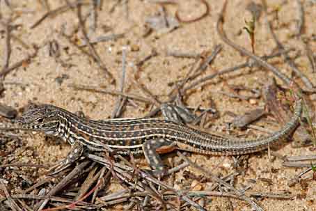 Schinz, H.R. (1833) - Description of Acanthodactylus erythrurus. - In: Naturgeschichte und Abbildungen der Reptilien. Brodtmann (Schaffhausen). 468 pp.  Harris, D.J. & Arnold, E.N. (2000) - Elucidation of the relationships of spiny-footed lizards, Acanthodactylus spp. (Reptilia: Lacertidae) using mitochondrial DNA sequence, with comments on their biogeography and evolution. - Journal of Zoology, London, 252 (3): 351-362.  ×Mitochondrial DNA sequences consisting of 645 sites from the 12S rRNA and 16S rRNA genes were used to estimate the phylogeny of 15 of the 32 species of spiny-footed lizards Acanthodactylus. The resultant tree has similarities to that produced from a differentially weighted data set of 32 morphological characters but there are also significant differences. However, combined analysis of molecular and morphological data sets produces the same tree topology as DNA sequence alone. The molecular data confirm that there are distinct eastern and western clades within Acanthodactylus, but place A. boskianus in the former while the A. scutellatus group constitutes a third clade. Species for which only morphological information is available were integrated with the combined tree to give a provisional phylogeny for 31 species. This phylogeny indicates that the ancestor of existing Acanthodactylus probably originated in south-west Asia and that North Africa was invaded by more than one lineage of the genus. It also suggests that soft aeolian sand habitats may have been independently occupied more than once. Molecular data provide independent evidence that the differential weighting of morphological characters in past analyses was appropriate. Fonseca, M.M. & Brito, J.C. & Paulo, O.S. & Carretero, M.A. & Harris, D.J. (2009) - Systematic and phylogeographical assessment of the Acanthodactylus erythrurus group (Reptilia: Lacertidae) based on phylogenetic analyses of mitochondrial and nuclear DNA - Molecular Phylogenetics and Evolution, 51 (2): 131-142.  ×We have used mitochondrial 12S rRNA, 16S rRNA and nuclear β-fibrinogen (intron 7) sequences to investigate the phylogenetic and phylogeographic relationships between Acanthodactylus erythrurus group species (except for A. boueti). The phylogenetic analyses of the Acanthodactylus genus did not cluster A. guineensis and A. savignyi with the remaining species of the group (A. blanci, A. lineomaculatus and A. erythrurus). Within the A. erythrurus group, the results of the mitochondrial DNA (mtDNA) and nuclear DNA (nDNA) showed a complex phylogeny with geographic structure, but it was not congruent with the present taxonomy. Some taxonomic units, such as A. blanci, A. lineomaculatus, A. e. atlanticus and A. e. belli did not form monophyletic genetic units. The application of a molecular clock suggested that the uplift of the Atlas Mountains in the mid-late Miocene and the reopening of the Strait of Gibraltar could be major biogeographic events responsible for the genetic differentiation in the group. Additionally, diverse micro-evolutionary patterns due to the recent contraction/expansion phases of the habitats in North Africa associated with the high dispersal capabilities of these lizards could be related to the complex phylogenetic patterns observed. Tamar, K. & Carranza, S. & Sindaco, R. & Moravec, J. & Trape, J.-F. & Meiri, S. (2016) - Out of Africa: Phylogeny and biogeography of the widespread genus Acanthodactylus (Reptilia: Lacertidae). - Molecular Phylogenetics and Evolution, 103: 6-18.  ×Acanthodactylus lizards are among the most diverse and widespread diurnal reptiles in the arid regions spanning from North Africa across to western India. Acanthodactylus constitutes the most species-rich genus in the family Lacertidae, with over 40 recognized species inhabiting a wide variety of dry habitats. The genus has seldom undergone taxonomic revisions, and although there are a number of described species and species-groups, their boundaries as well as their interspecific relationships are largely unresolved. We constructed a multilocus phylogeny, combining data from two mitochondrial (12S, cytb) and three nuclear (MC1R, ACM4, c-mos) markers for 302 individuals belonging to 36 known species, providing the first large-scale time-calibrated molecular phylogeny of the genus. We evaluated phylogenetic relationships between and within species-groups, and assessed Acanthodactylus biogeography across its known range. Acanthodactylus cladogenesis is estimated to have originated in Africa due to vicariance and dispersal events from the Oligocene onwards. Radiation started with the separation into three clades: the Western and scutellatus clades largely distributed in North Africa, and the Eastern clade occurring mostly from Arabia to south-west Asia. Most Acanthodactylus species diverged during the Miocene, possibly as a result of regional geological instability and climatic changes. We support most of the current taxonomic classifications and phylogenetic relationships, and provide genetic validity for most species. We reveal a new distinct blanfordii species-group, suggest new phylogenetic positions (A. hardyi, A. masirae), and synonymize several species and subspecies (A. lineomaculatus, A. boskianus khattensis and A. b. nigeriensis) with their phylogenetically closely-related species. We recommend a thorough systematic revision of taxa exhibiting high levels of intraspecific variability as well as clear evidence of phylogenetic complexity such as A. guineensis, A. grandis, A. dumerilii, and A. senegalensis and the pardalis and erythrurus species-groups.